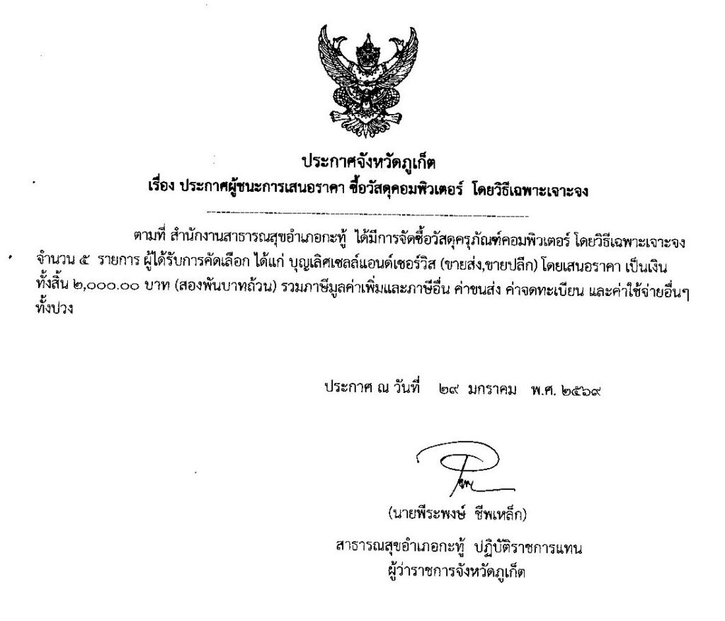 ข่าวจัดซื้อจัดจ้าง สำนักงานสาธารณสุขอำเภอกะทู้ ประกาศผู้ชนะการเสนอราคา ซื้อวัสดุคอมพิวเตอร์ โดยวิธีเฉพาะเจาะจง กุมภาพันธ์ 12, 2026กุมภาพันธ์ 12, 2026 สำนักงานสาธารณสุขอำเภอกะทู้ Share